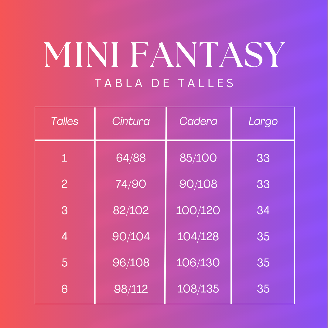 Tabla de talles: